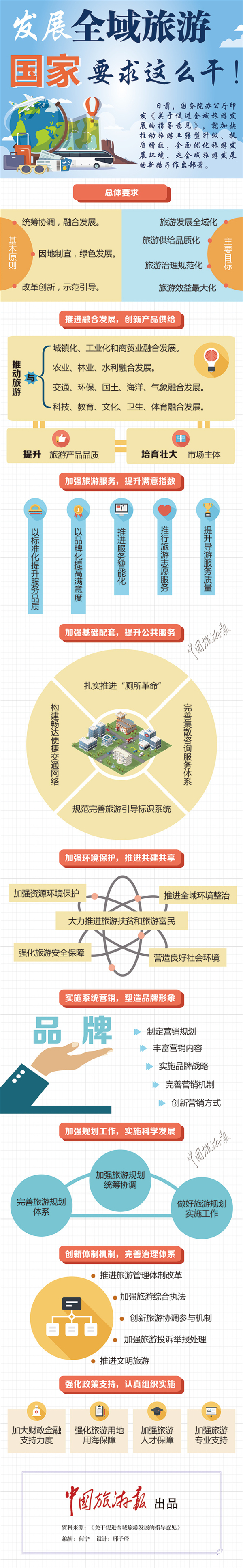 《意见》要求,各地区、各部门要充分认识发展全域旅游的重大意义,确保全域旅游工作取得实效,实现旅游发展全域化、旅游供给品质化、旅游治理规范化、旅游效益最大化等目标。